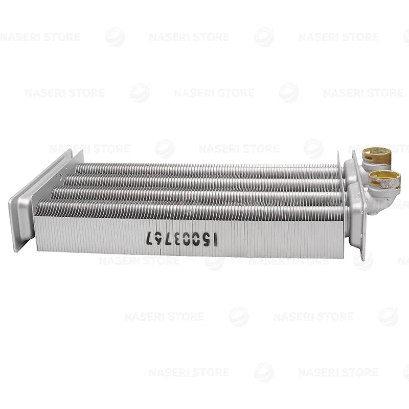 مبدل اصلی پکیج قطعهای حرارتی است که در بالای برنر یا مشعل قرار دارد و شعله مستقیم مشعل به فینها و لولههای آن برخورد میکند و گرما را با راندمان بالا به آب مدار گرمایش منتقل میسازد؛ این آب گرم شده سپس یا وارد رادیاتورها میشود یا به مبدل ثانویه میرود تا آب مصرفی را گرم کند، بنابراین این مبدل منبع اصلی تأمین حرارت کل سیستم و پایه عملکرد پکیج محسوب میشود.